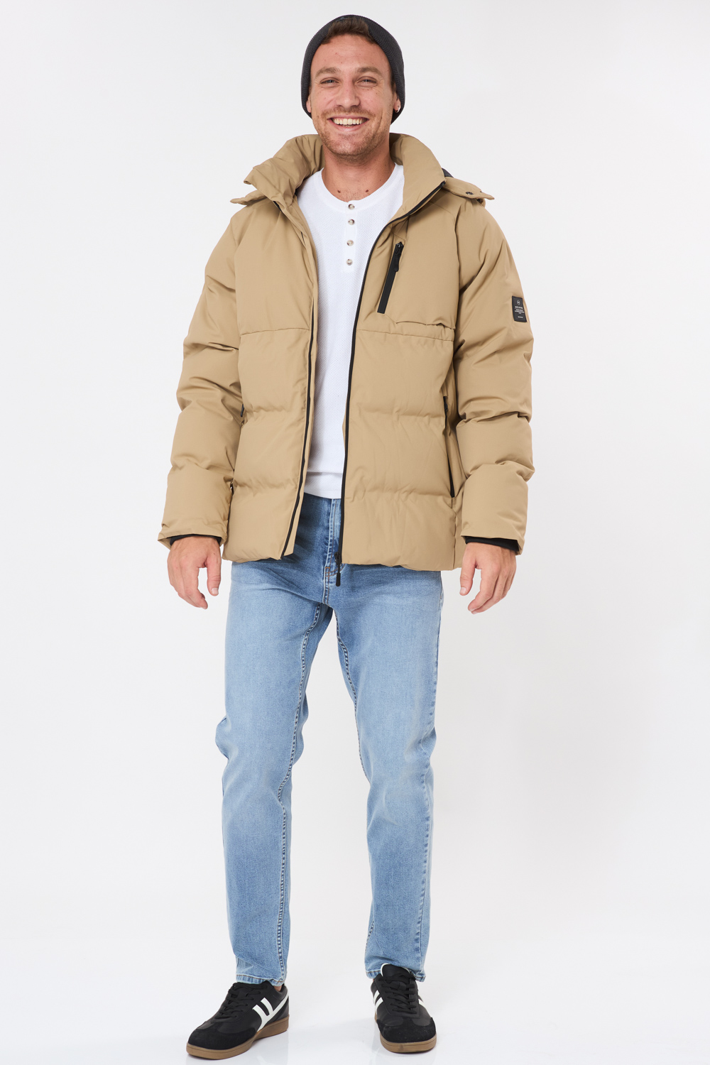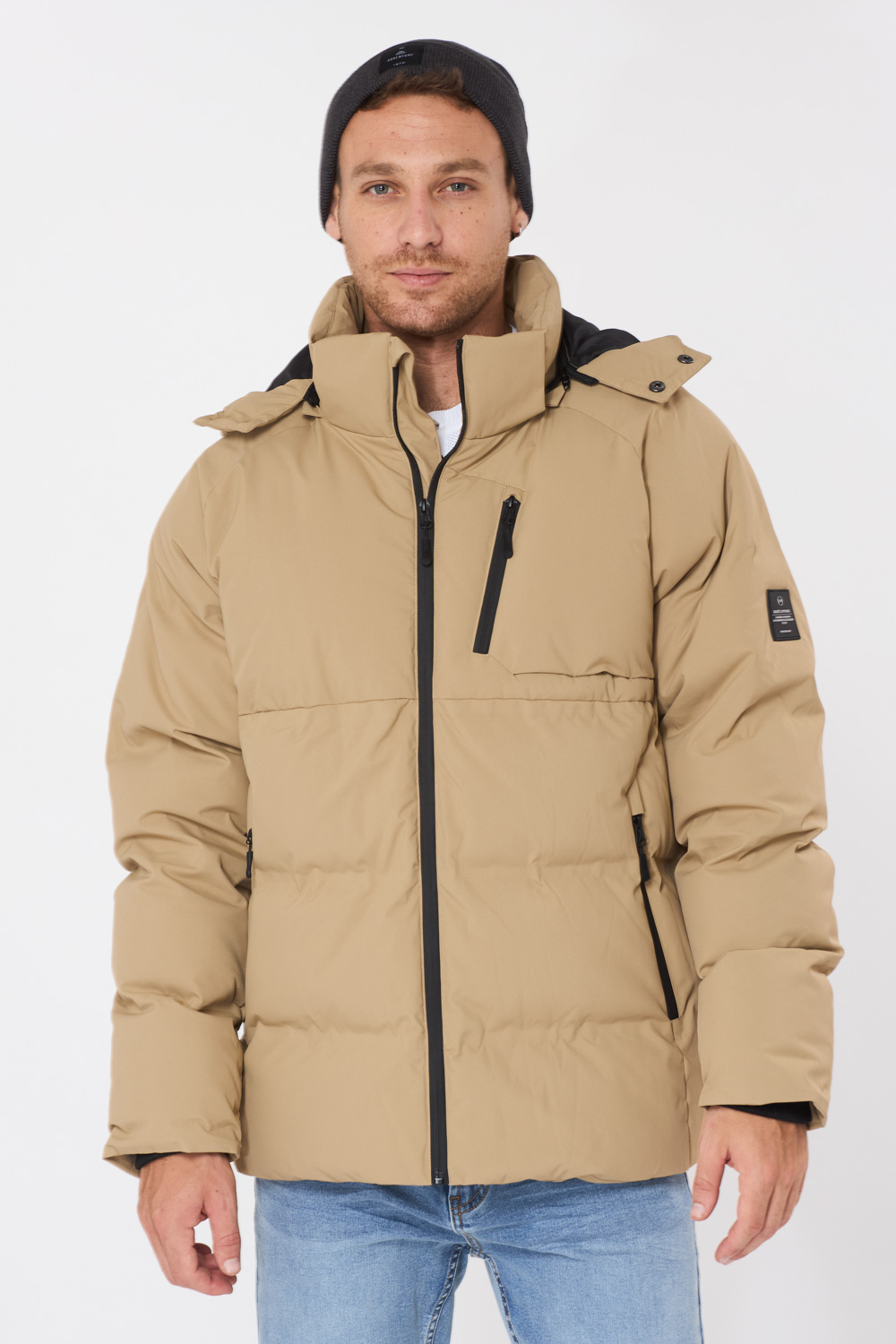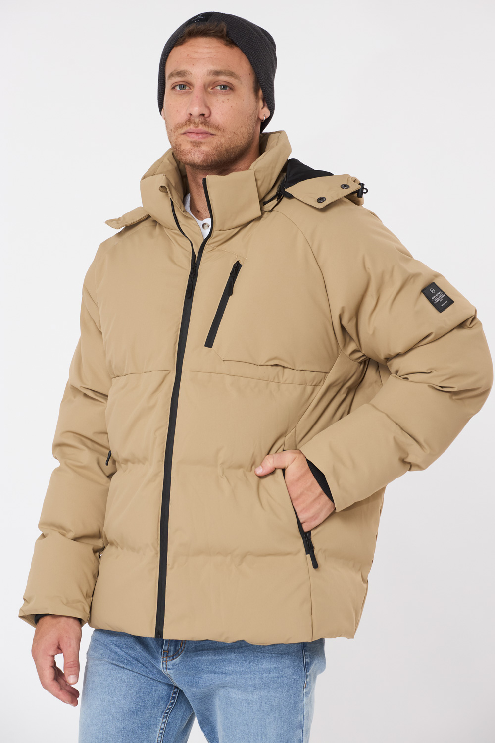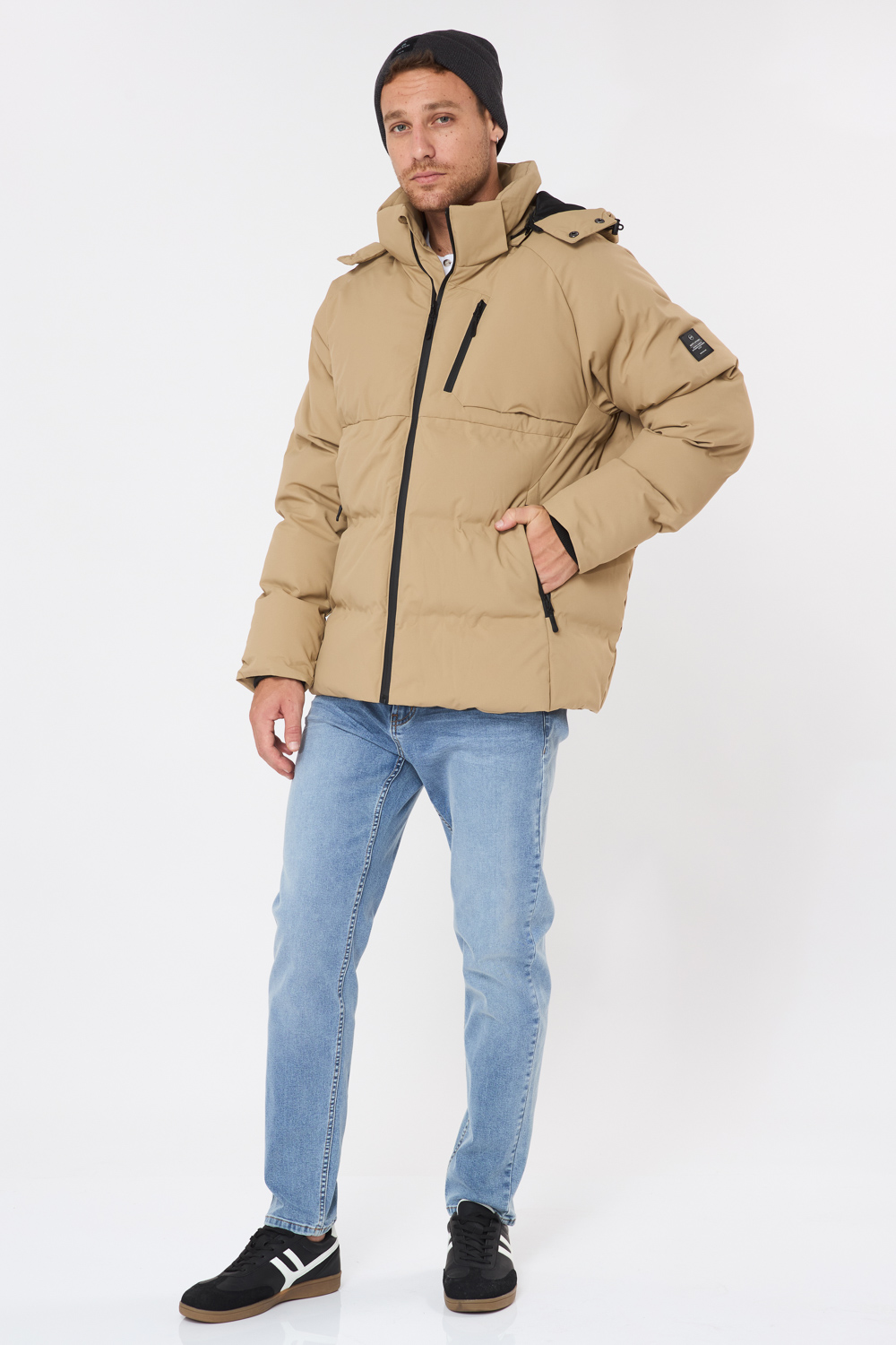 מעיל קוילט עבה חורפי ונפוח שילוב כיסי רוכסן קפוצ'ון נשלף עם רוכסן