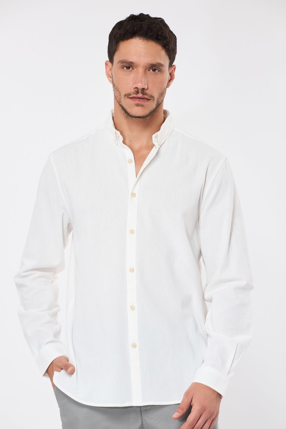 חולצה מכופתרת בד עם חספוס עדין במרקם נופל גזרה רחבה comfort fit