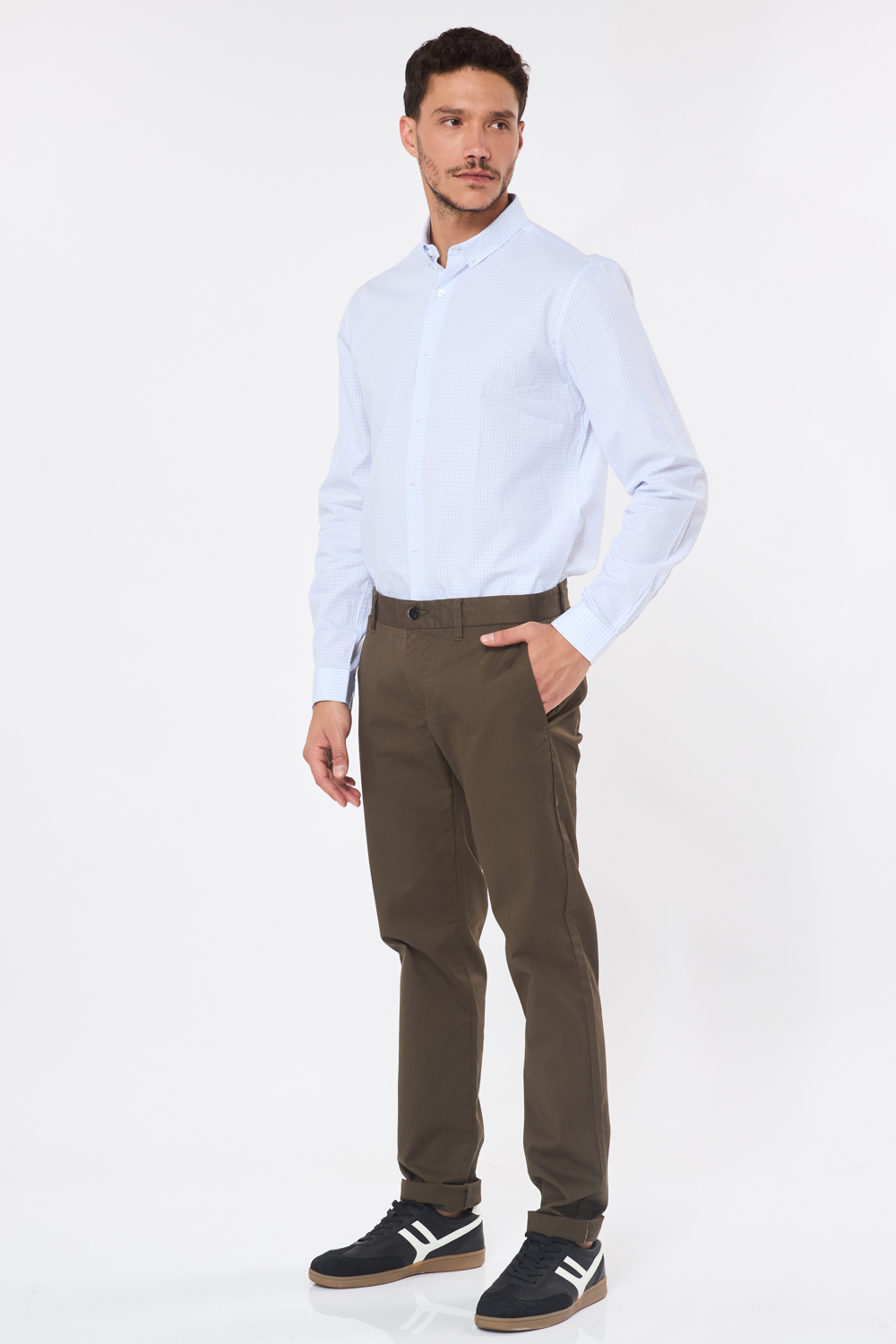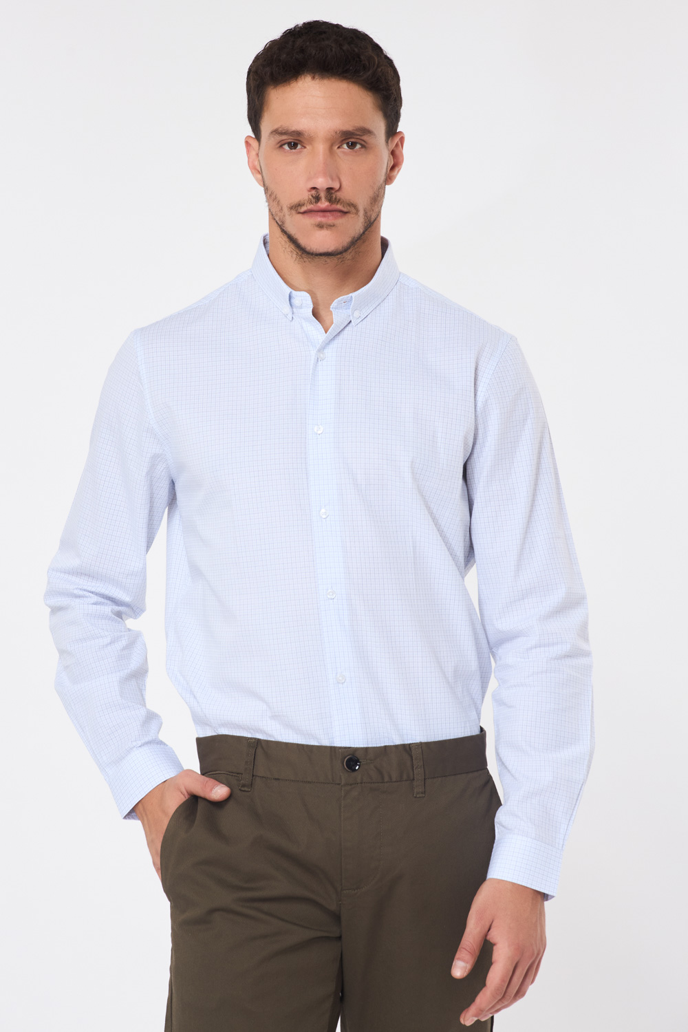 חולצה מכופתרת בד מיני משבצות עדין מראה אלגנטי גזרה ישרה straight fit