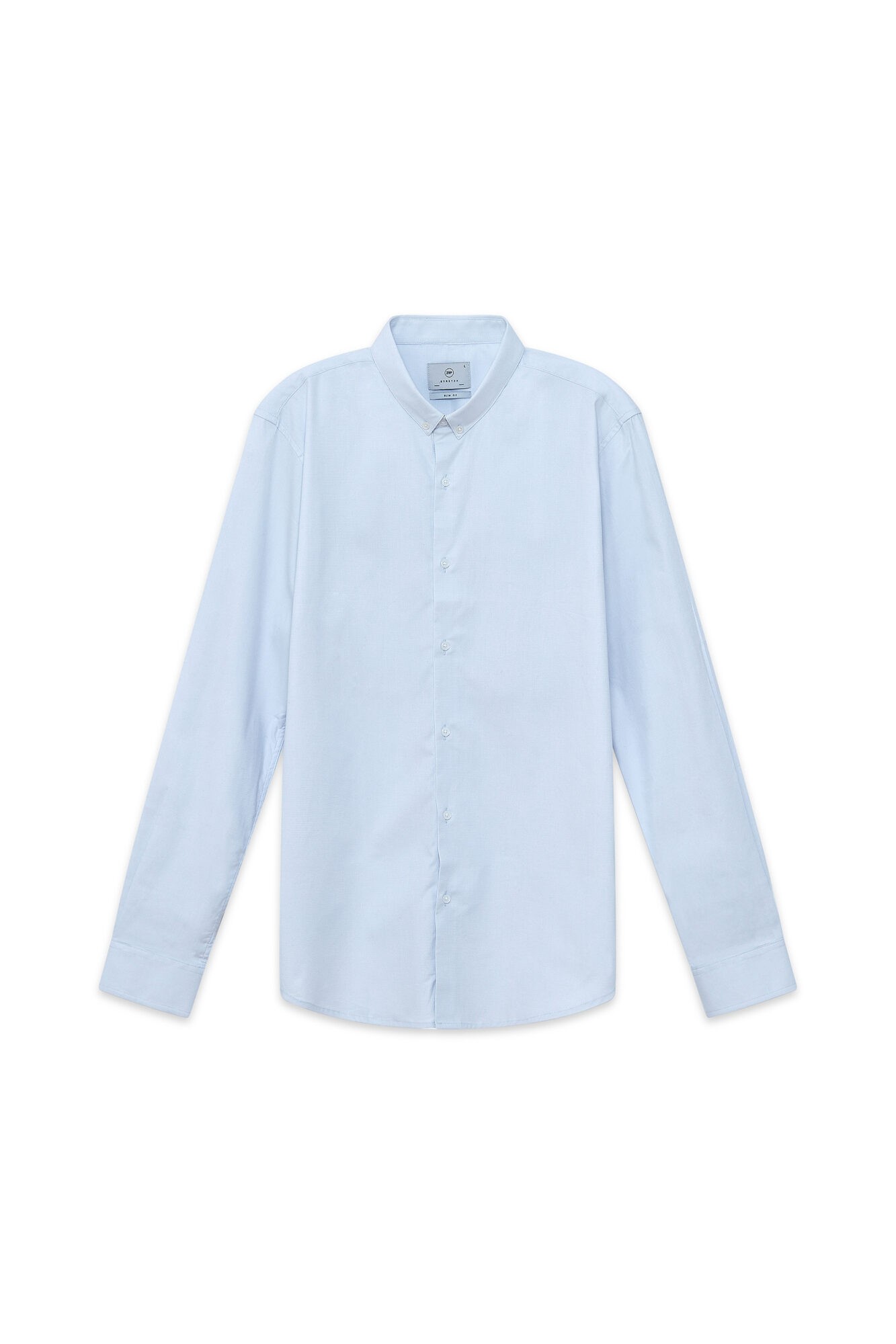 חולצה מכופתרת בד בשילוב לייקרה עם טקסטורה עדינה מראה אלגנטי גזרה צרה slim fit