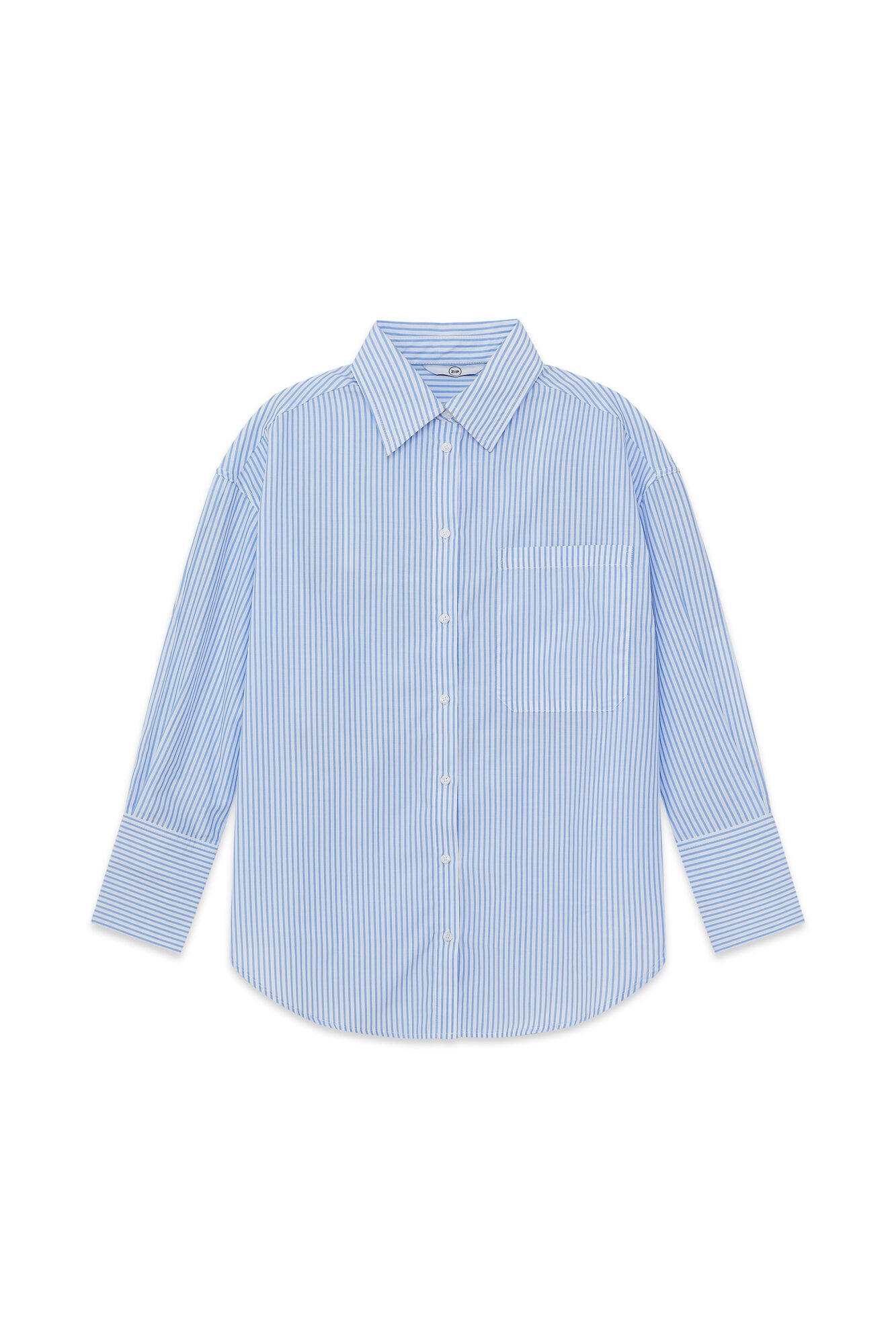חולצה מכופתרת בדוגמת פסים גזרת אוברסייז כיס חזה וסיומת מעוגלת