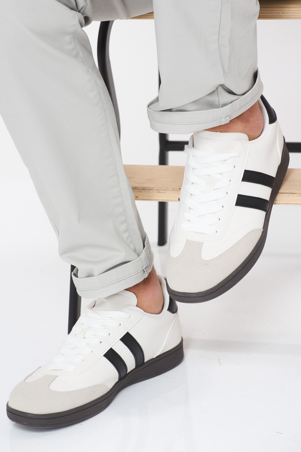 נעל סניקרס ספורטיבי אפנתי שילוב פסים צדדיים