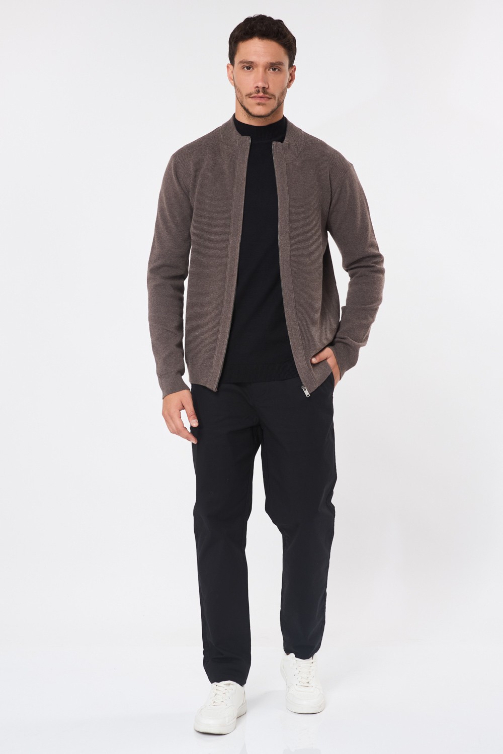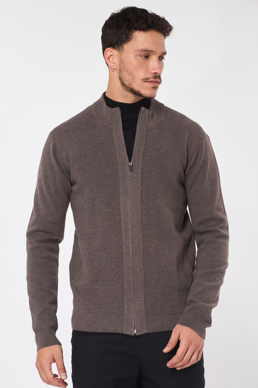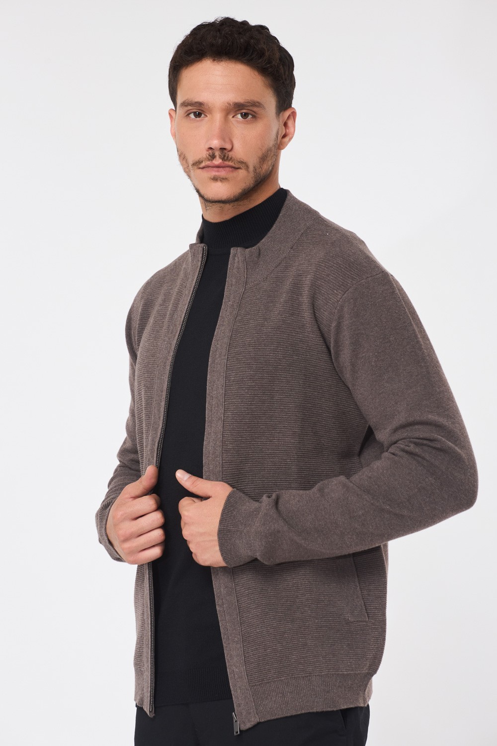 סוודר קרדיגן עם רוכסן – חום