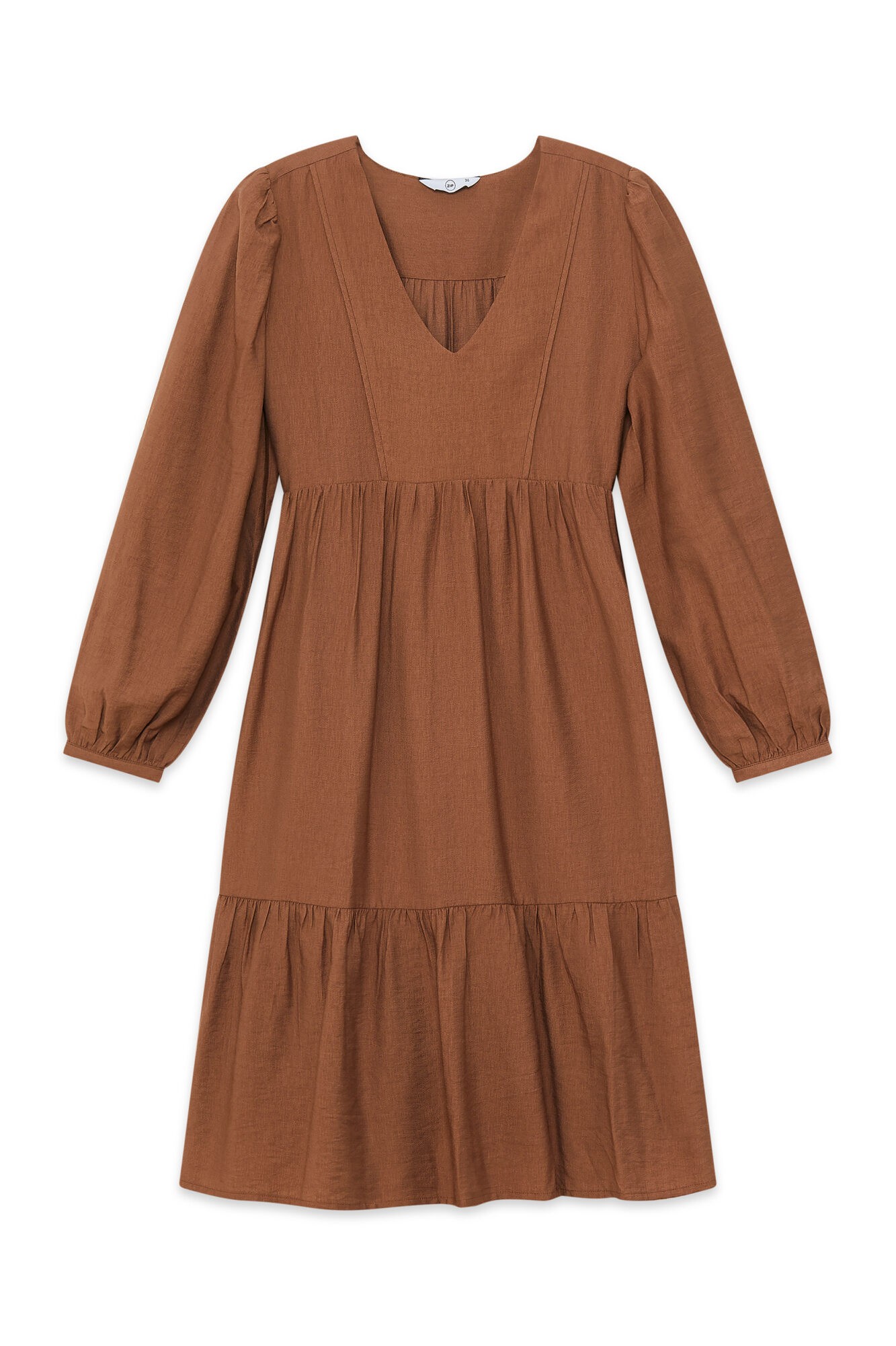 שמלת קומות מחשוף V שרוולים בסיומת כפתור